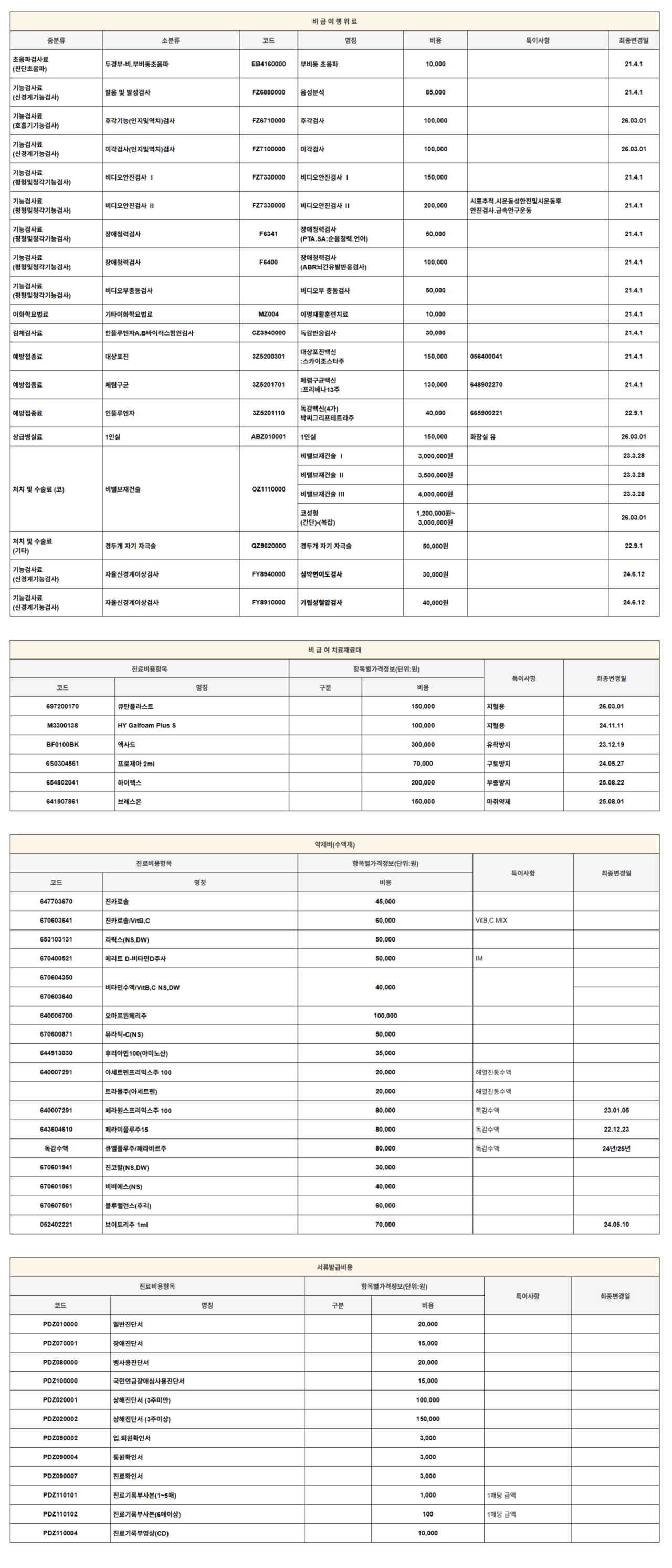 비급여 수가입니다. 페이지 정보 작성자 최고관리자 댓글 0건 조회 9,427회 작성일 21-03-30 10:18 본문 비급여 수가입니다. 최종변경일 2026년 04월 07일입니다. 목록 이전글5월 진료 및 휴진 안내 21.04.26 다음글3월 진료안내 21.03.03 댓글목록 댓글목록 등록된 댓글이 없습니다.